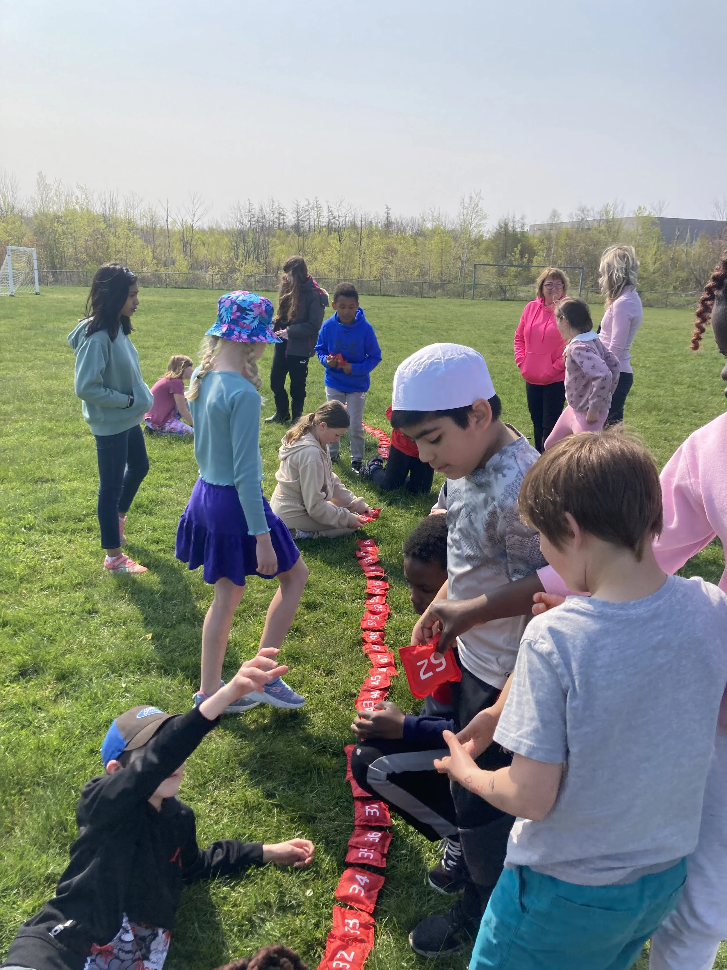 Two students from each team move in the centre and each pick up one randomly selected number tile. They then return to their team. The whole team assesses which number is greater, which number is less than.